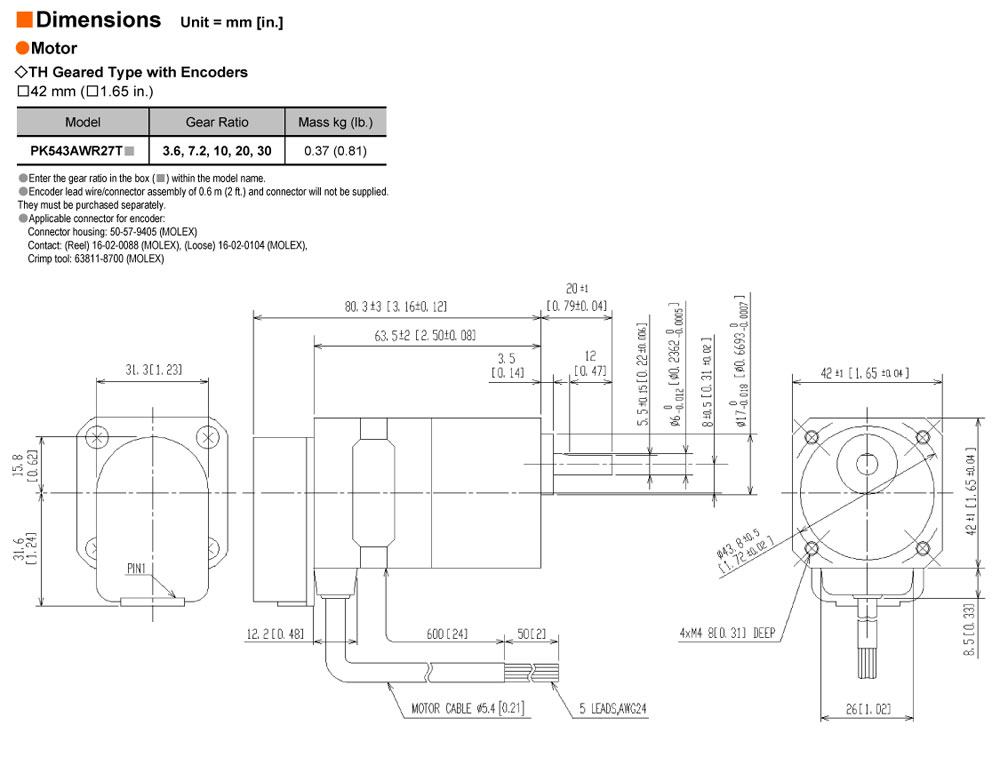 - Temperature rise of the coil measured by the Change Resistance Method is 176°F (80°C) or less (at rated current, at standstill, five phases energized). |